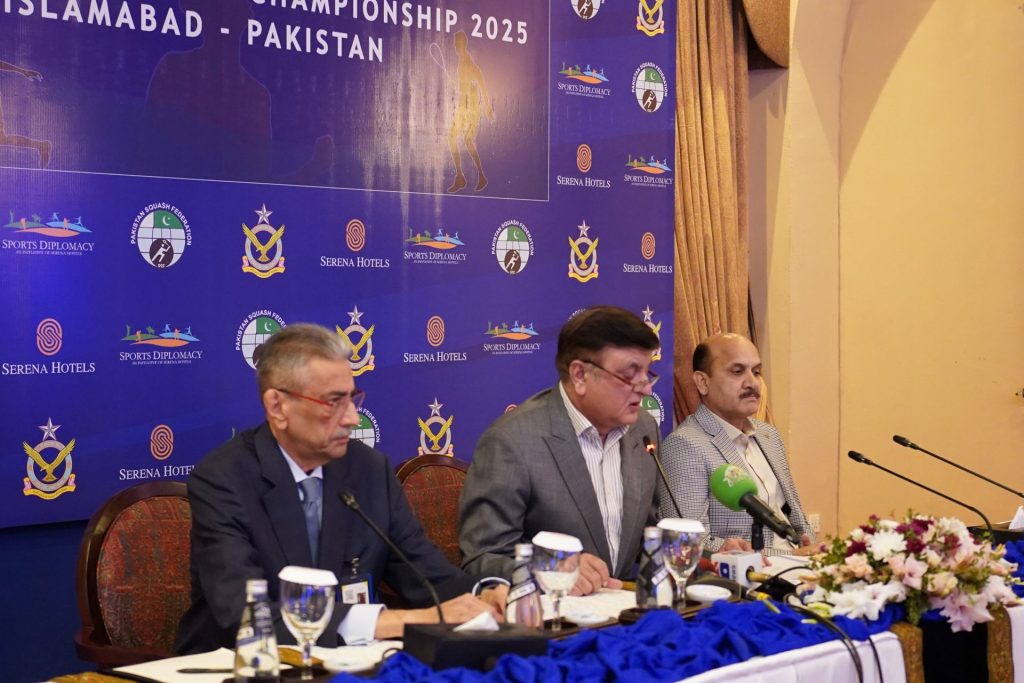A Press Conference for the tournament was held at Serena Hotel today (20 Nov, 25). Secretary Pakistan Squash Federation Air Commodore (Retd) Amir Nawaz, Director Academies Pakistan Squash Federation Group Captain (Retd) Irfan Asghar​ and Reps from Serena Hotels were also present at the occasion.
