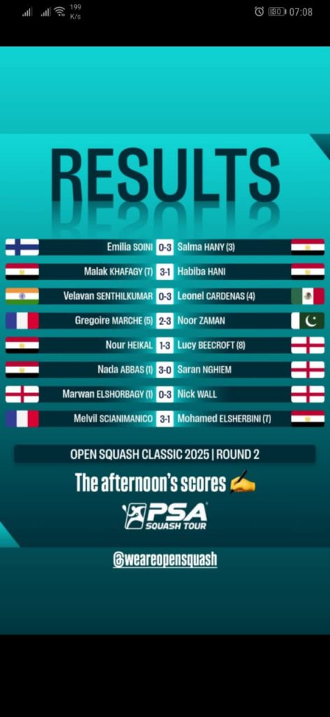 The $74,000 Open Squash Classic 2025, a Bronze Level tournament in the USA, has seen an exciting match. Noor Zaman has qualified for the quarterfinals by beating Grégoire Marche of France, World No. 20.