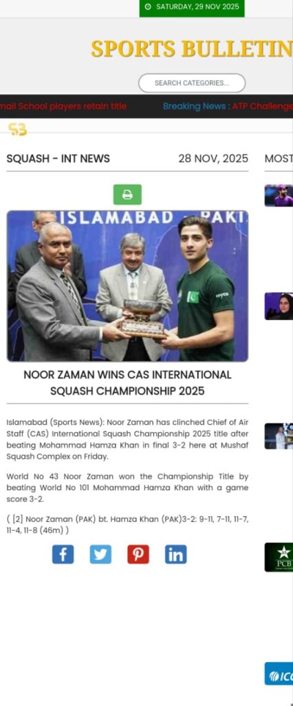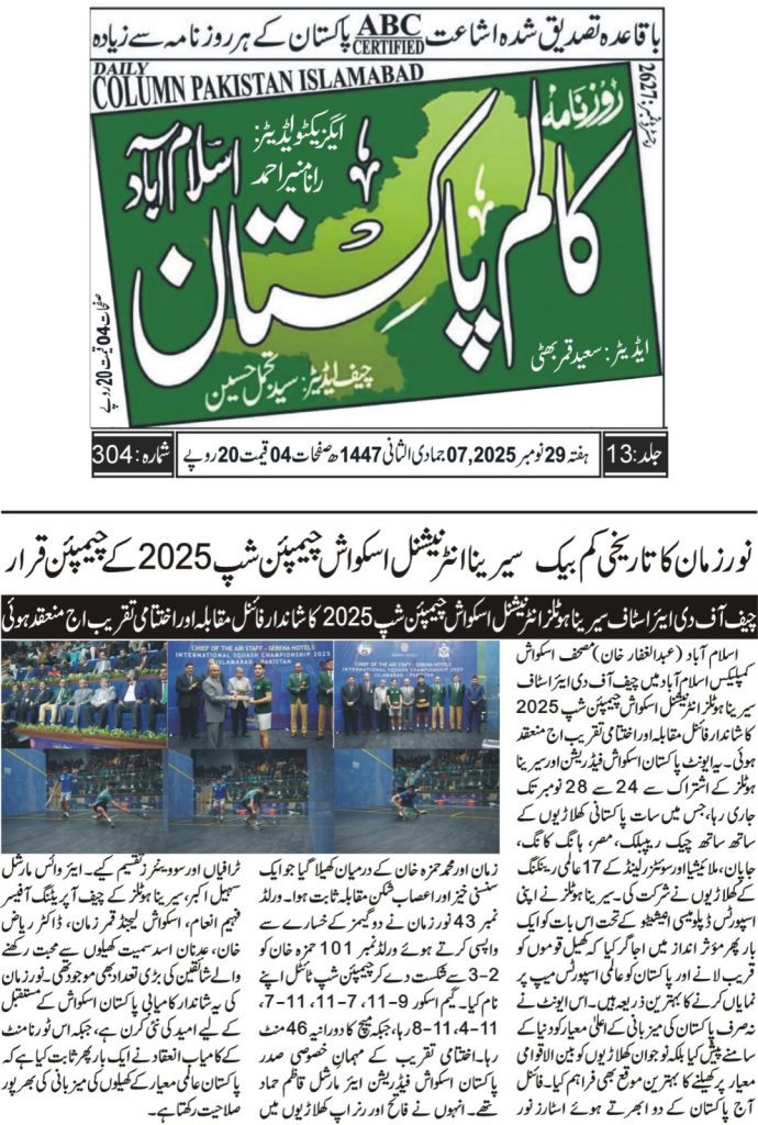 Thanks to print and electronic media for their brilliant coverage of CAS‑Serena Hotels International Squash Championship 2025.