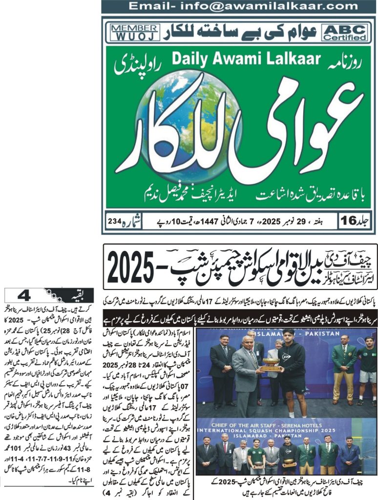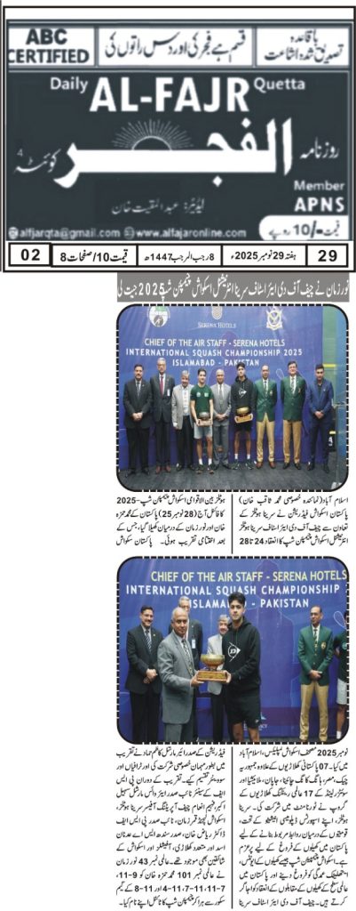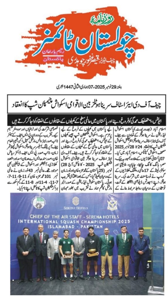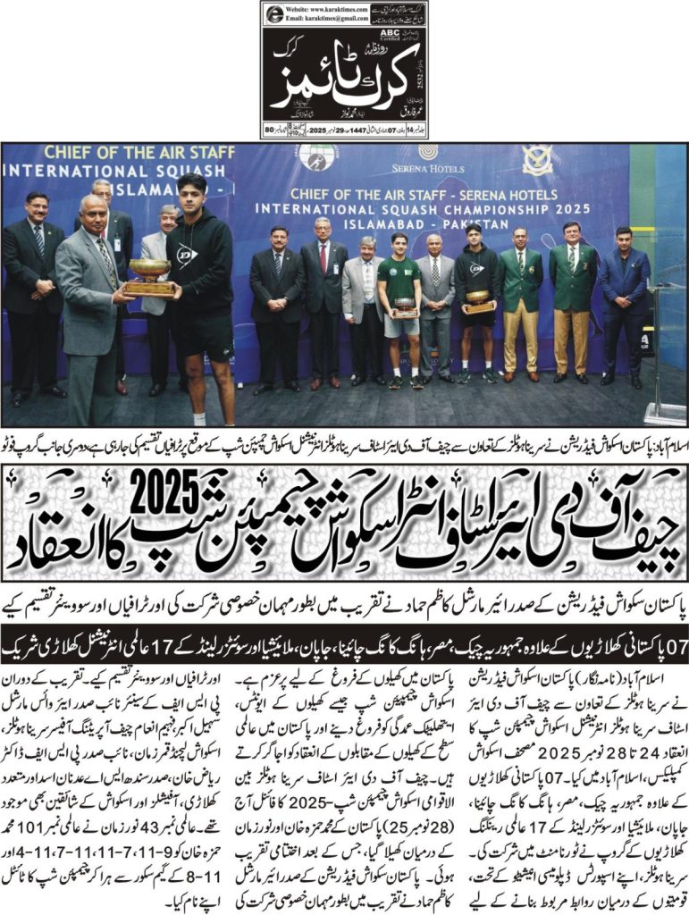 Thanks to print and electronic media for their brilliant coverage of CAS‑Serena Hotels International Squash Championship 2025.